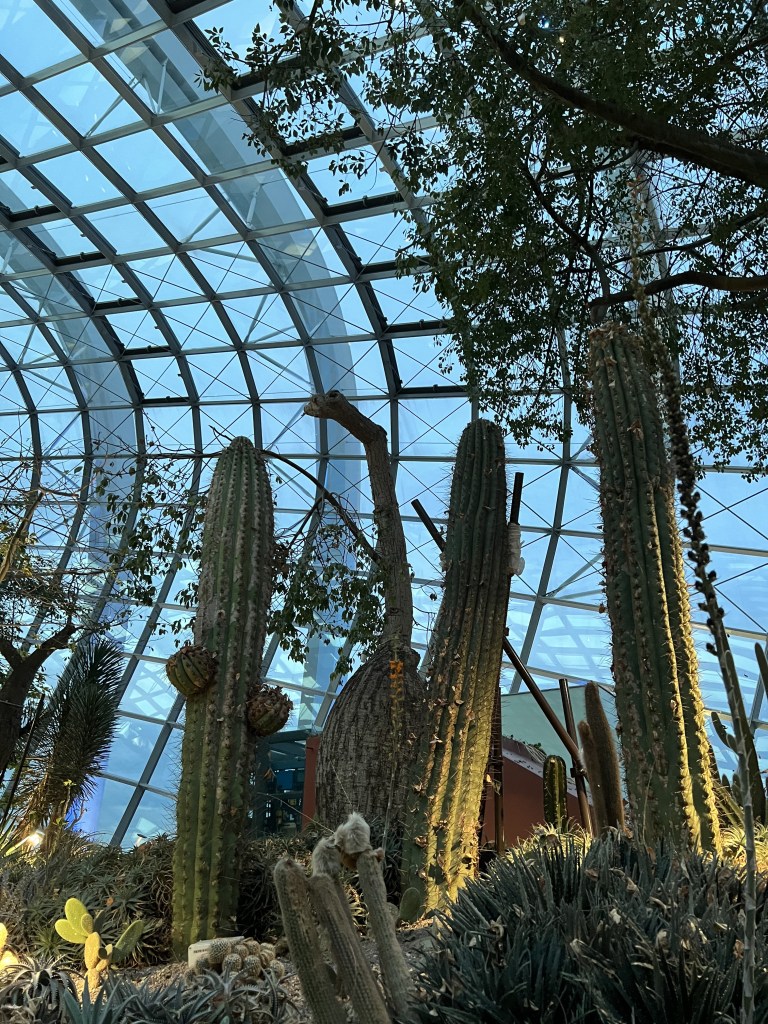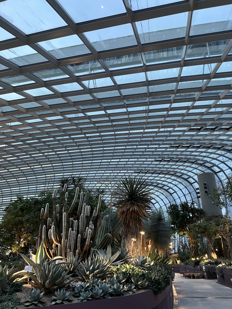 อากาศใน Flowe Dome มีอุณหภูมิระหว่าง 23-25 องศา ใครจะไปก็อย่าลืมเรื่องนี้ด้วย เพราะการคงอุณภูมิจะช่วยให้ต้นไม้ที่มาจากหลายหลายที่ เติบโตได้อย่างดีที่สุด มีการแบ่งโซนพืชพรรณไว้ได้อย่างหลากหลาย และมีสีสัน โซนที่เราชอบที่สุดคือโซนกระบองเพชร และแคตตัส เพราะมีเสน่ห์มากๆ สำหรับใครที่สงสัยว่าสิงคโปร์เป็นเมืองร้อนชื้นไม่ใช่หรอ แต่ใน Flower Dome ขนาดใหญ่ทำไมยังคงความเย็นไว้ได้ ก็อยากให้ย้อนกลับไปดูที่แผนภูมิ เพราะนอกจากการมีท่อน้ำอยู่ด้านล่าง Flower Dome ยังมีการระบายความร้อนชื้นออกได้อย่างลงตัวเชื่อมไปยัง Supertree อีกด้วย