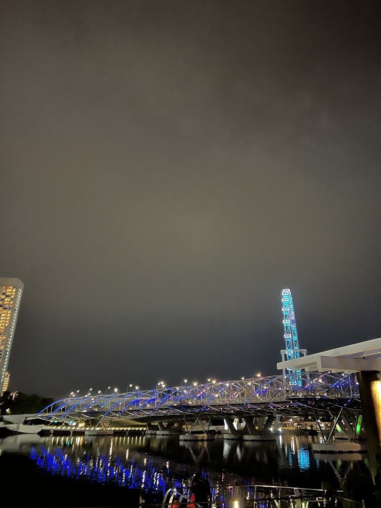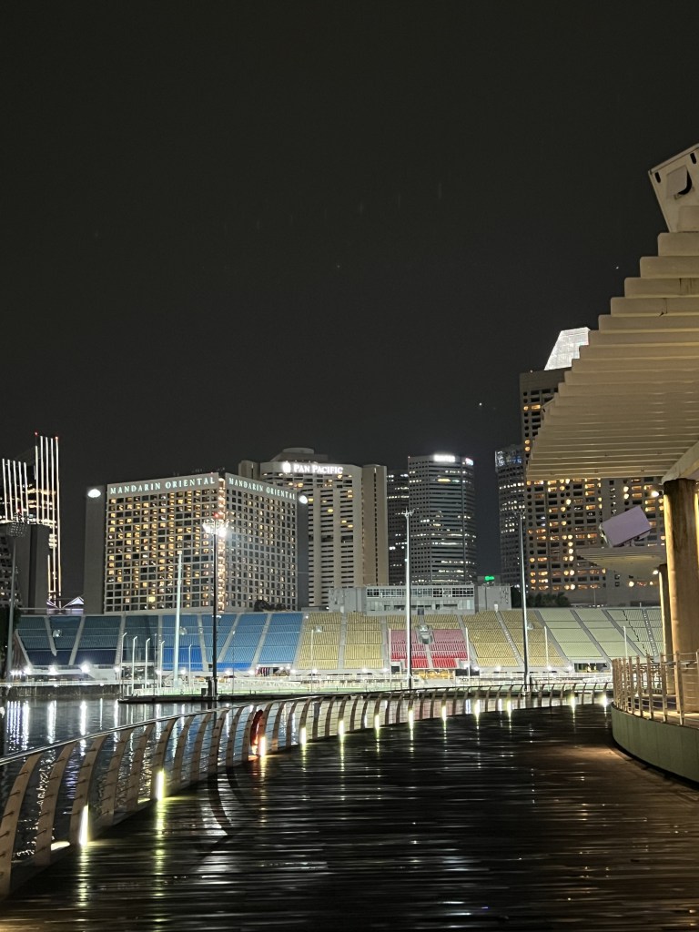 ตึกที่เรียงรายใน มาริน่า เบย์ ยามค่ำคืนยังเป็นจุดที่เราอยากให้ทุกคนได้ใช้เวลาอย่างเต็มที่ เพราะนอกจากความสวยงามที่รังสรรค์ด้วยสองมือของมนุษย์แล้ว ยังทำให้เห็นถึงศักยภาพของพื้นที่ที่พัฒนาไปอย่างก้าวกระโดด ไม่ว่าจะเป็นตึกมาริน่า เบย์ และ สะพานเฮริก