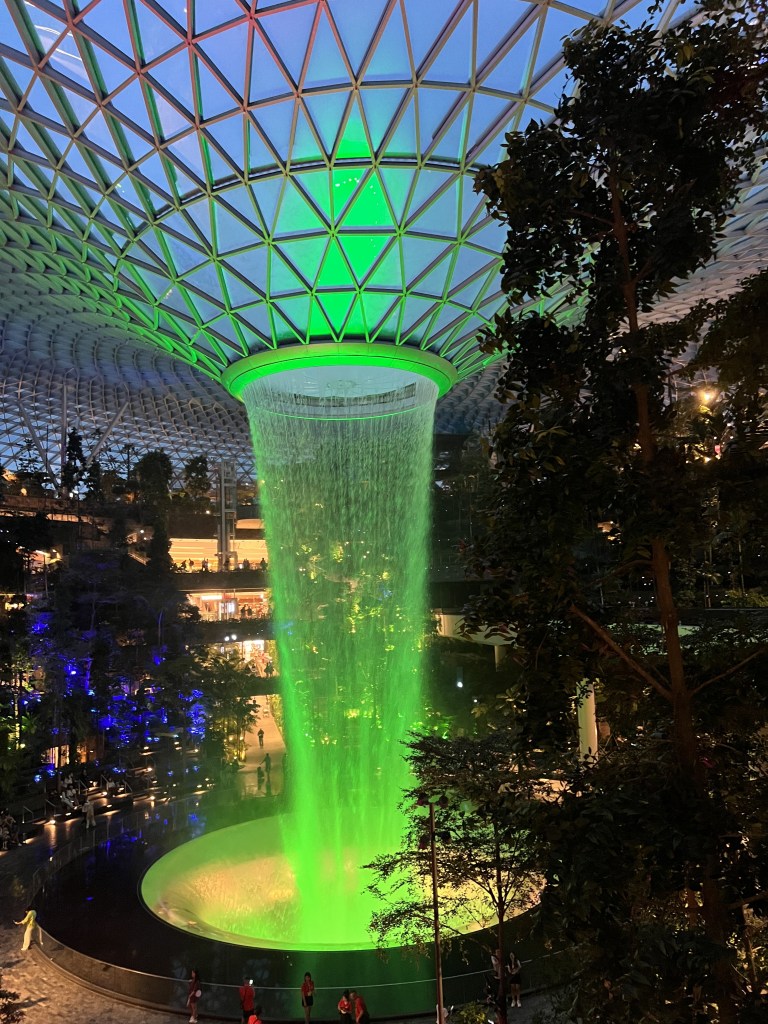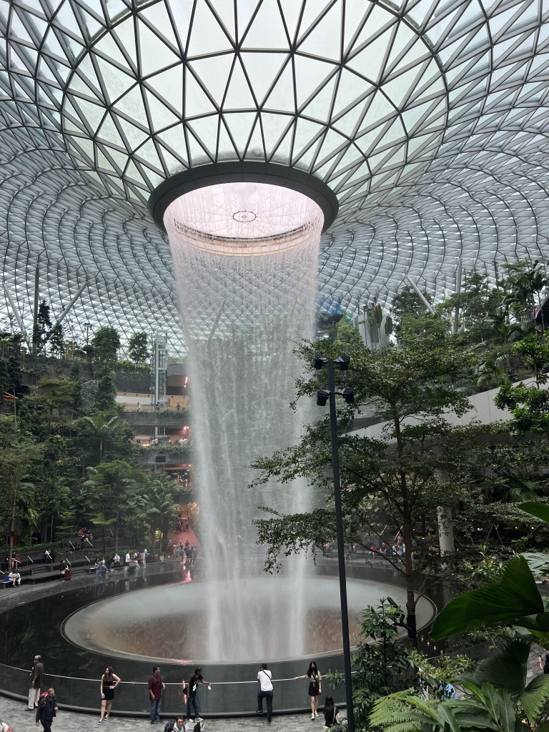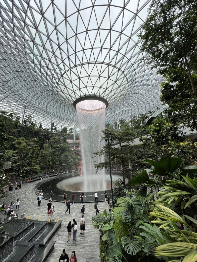 Jewel Changi Airport จุดเชื่อมต่อ Terminal ที่ออกแบบโดย Moshe Safdie เหมือนกับที่มาริน่า เบย์ เป็นผู้รังสรรค์ถามว่าฟังก์ชั่นของ Jewel จุดเด่นที่สำคัญก็คงหนีไม่พ้นน้ำตกที่สูงที่สุดสำหรับพื้นที่ปิด โดยน้ำตกในโซนดังกล่าว ยังเป็นน้ำฝนที่ผ่านกระบวนการมาแล้วให้ใสอย่างที่เห็นในพื้นที่กว่า 1.4 ล้านตารางฟุต