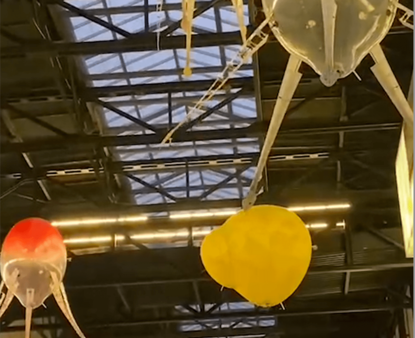 แมงกระพรุนที่ลอยละล่องด้วยแก๊สฮีเลียม และมอเตอร์ขนาดเล็ก พร้อมใบพัด โดยศิลปิน Anicka Yi จัดแสดงทั้งหมด 2 สายพันธุ์ พร้อมสัมผัสกลิ่นใต้ท้องทะเลได้แล้วที่ Tate Modern