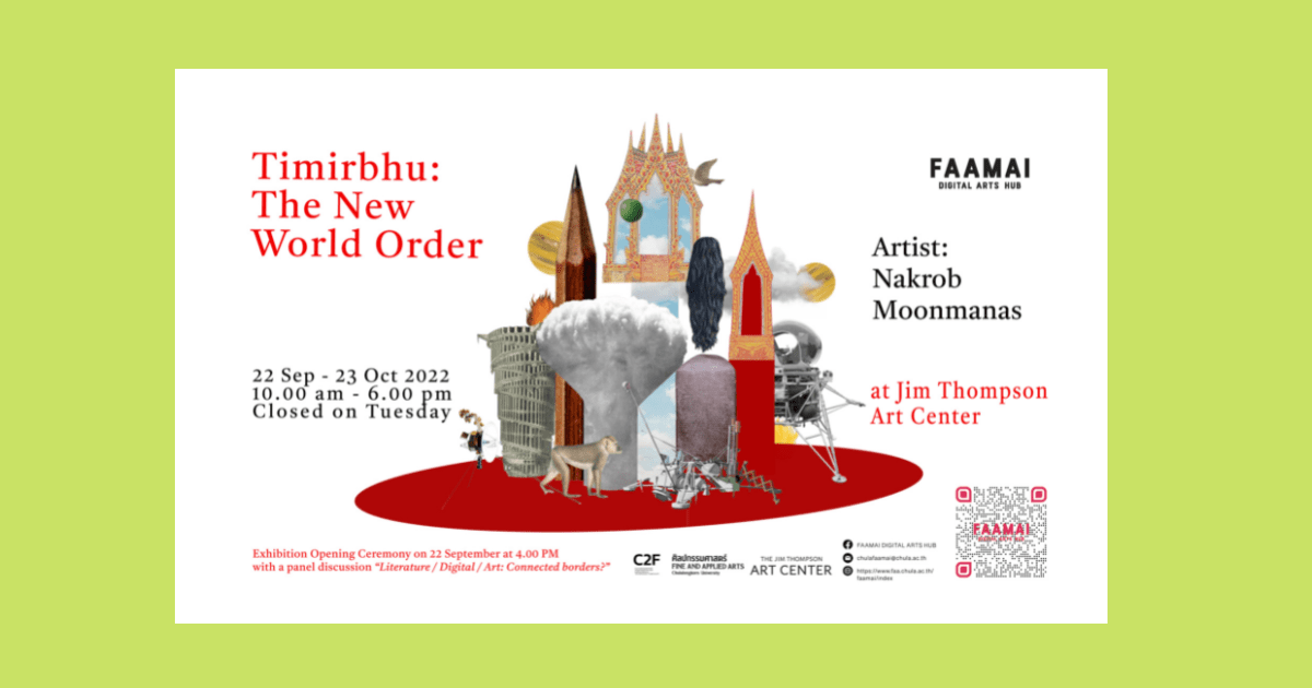 ‘นิทรรศการ Timirbhu: the New World Order’ โดยศิลปิน Nakrob Moonmanas ถึงคราววรรณคดีไทยที่จะกลับมาโลดแล่น ผสานกับเทคโนโลยี และนวัฒนกรรม รูปแบบใหม่ จัดโดยโครงการศูนย์ปฏิบัติการศิลปกรรมดิจิทัล (FAAMAI) คณะศิลปกรรมศาสตร์ จุฬาลงกรณ์มหาวิทยาลัย